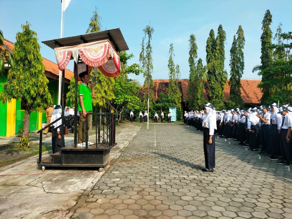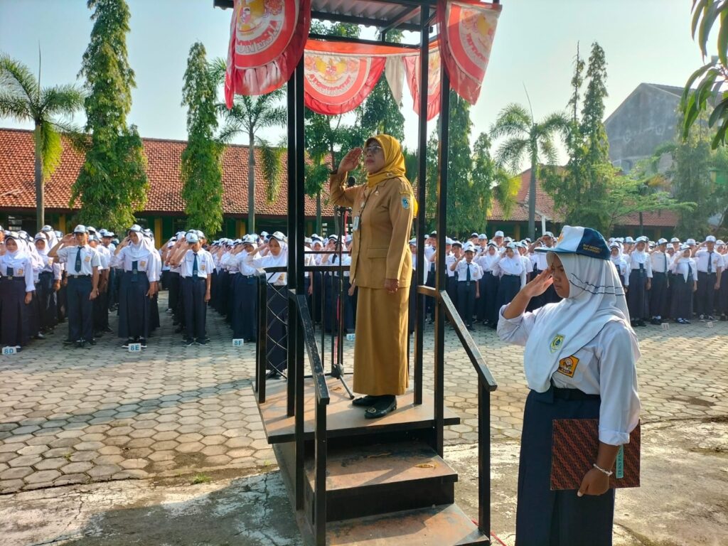 Atas instruksi dari Dinas Pendidikan dan Kebudayaan kabupaten demak, upacara pada hari pertama ini dilaksanakan. Dengan berdasar pada instruksi tersebut, semua petugas upacara melakukan persiapan. Di atas mimbar, ibu Sri Suratmi, S.Pd., M.Pd. menyampaikan pesan-pesan pembinaan.