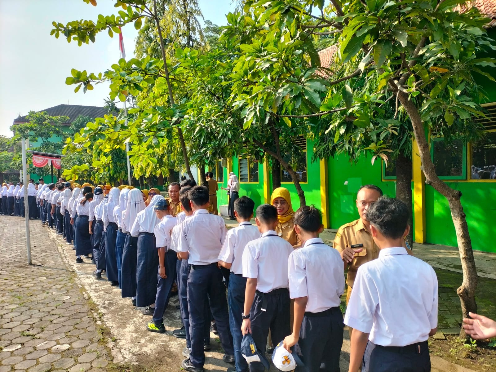 Kegiatan dibuka dengan upacara. Lapangan dipenuhi dengan barisan guru, karyawan dan siswa. Semua khidmat mengikutinya. Pun demikian saat menghormat kepada bendera pusaka.